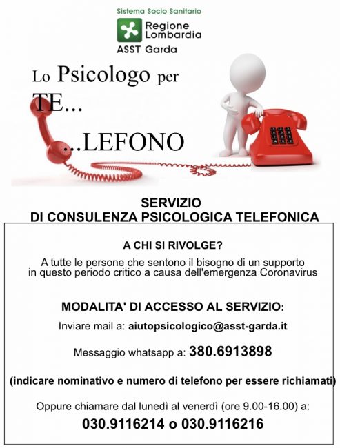 Tutto questo sta determinando nei cittadini un bisogno crescente di aiuto psicologico, a cui la direzione strategica dell’Azienda socio sanitaria territoriale del Garda ha voluto rispondere con il coinvolgimento degli psicologi che operano nei diversi servizi aziendali e che si sono messi a disposizione per il sostegno ai singoli cittadini che ne hanno bisogno.