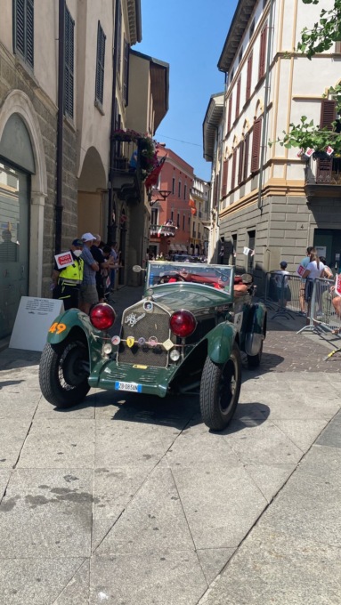 Un momento tanto atteso e Chiari non si è fatta trovare impreparata. Bandiere e bandierine, addobbi, pure i negozi del centro storico si sono “vestiti” a tema per l’occasione.  La 40esima edizione della rievocazione automobilistica, storica eccellenza bresciana, per la prima volta ha fatto tappa nella città del Conte Franco Mazzotti, che fu tra i fondatori della Mille Miglia stessa. In arrivo  da Parma, dopo aver attraversato i territori dell’Oltrepò Pavese, aver affrontato i tornanti dell’Autodromo Nazionale di Monza e aver percorso il centro cittadino di Bergamo, le auto storiche in quest momento stanno transitando nel cuore di Chiari passando da via Gnutti, via Cologne, viale Cesare Battisti, piazza Cavour e piazza Martiri della Libertà. Da qui le auto sono entrate per la prima volta nel Centro Storico clarense, via Villatico e via Bettolini, per poi entrare  in piazza Zanardelli, dove è previsto il controllo timbro.