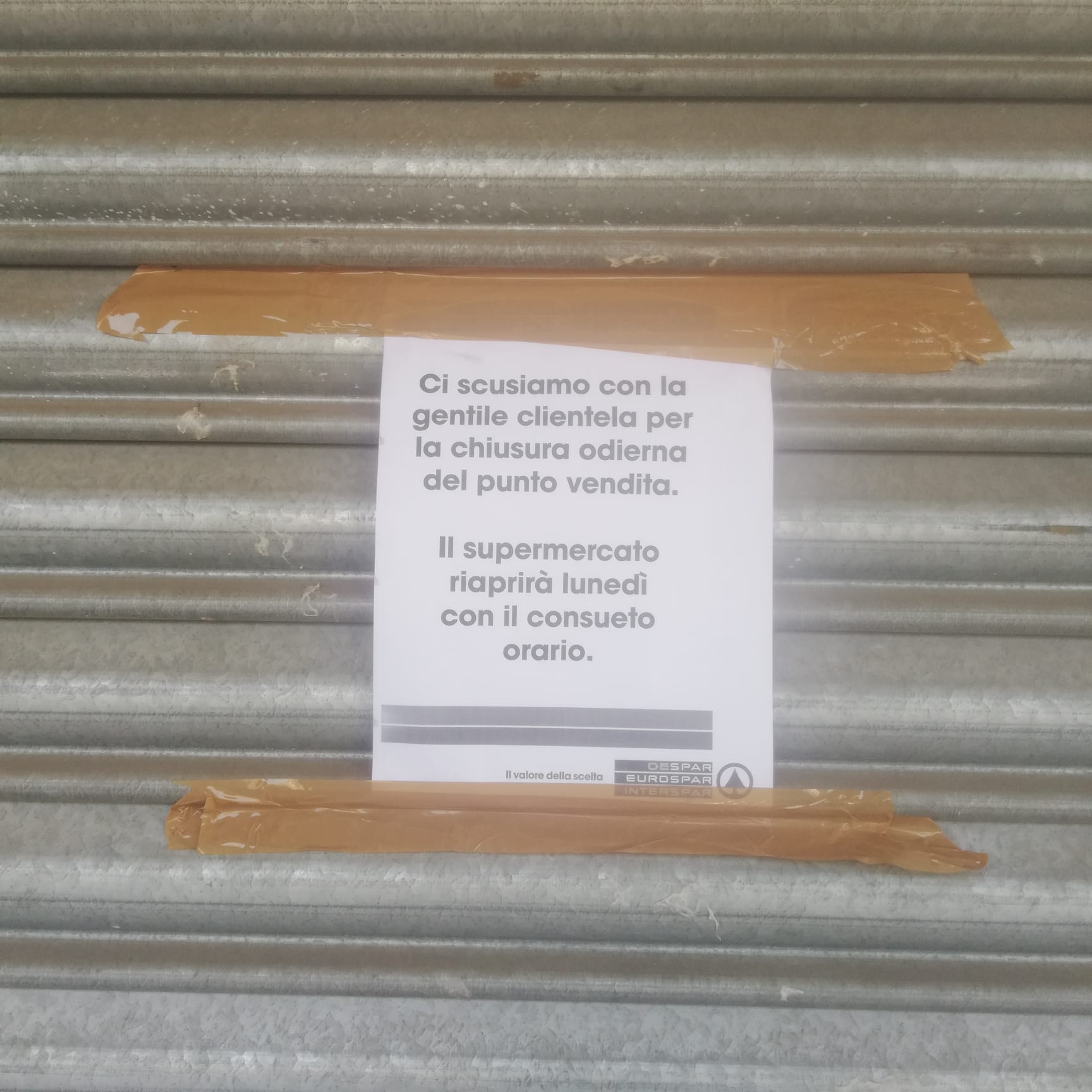 Rimane invece aperto l'Interspar all'angolo fra via XXV Aprile e via 1 Maggio. Diversi i supermercati in Lombardia chiusi, e molti di quelli aperti chiuderanno in anticipo a causa della mancanza di personale sufficiente