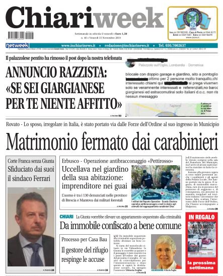 E’ in edicola il nuovo numero del Chiariweek. Questa settimana tante notizie dal territorio: si va dalla cronaca nera alla giudiziaria, passando per la politica e la bianca.