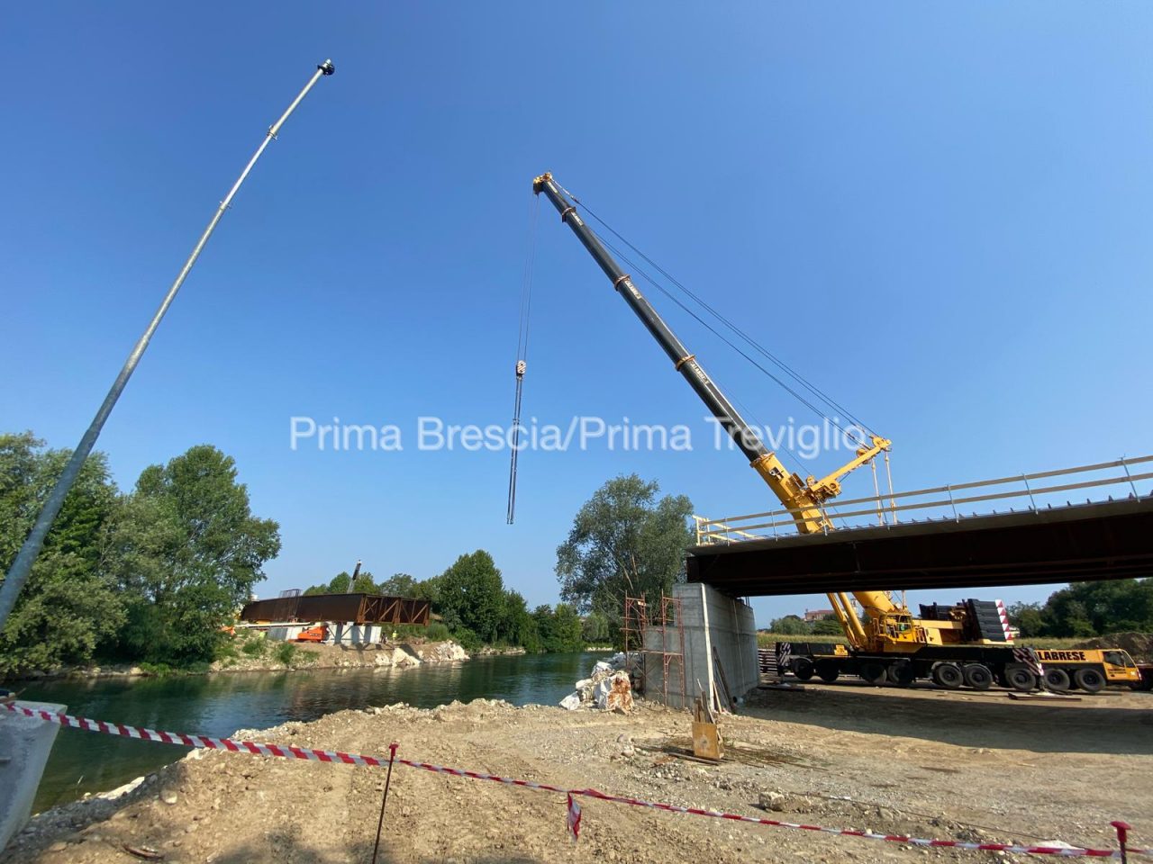 E’ stato posizionato oggi: dopo anni d’attesa, finalmente, c’è il ponte che unisce le sponde dell’Oglio e collega Pontoglio con Palosco.
