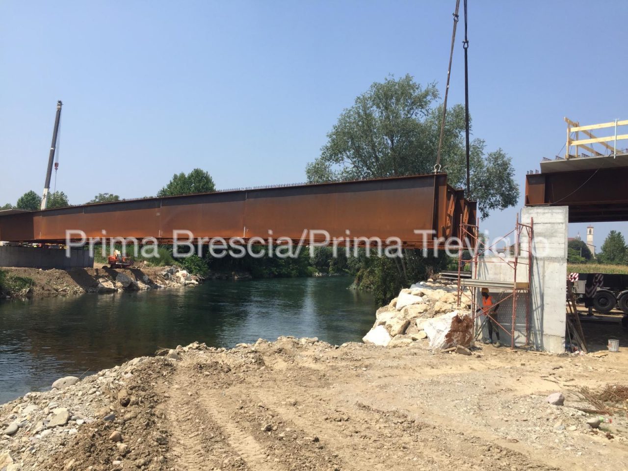 Un’opera attesa da anni. E’ stato un momento epico quello di oggi, mercoledì 29 luglio. Questa mattina, dopo mesi e mesi di lavori, è infatti stato posizionato il ponte che collega le due sponde del fiume Oglio. Questo, interamente sul territorio di Pontoglio, si congiunge però con Palosco e unisce (finalmente) Brescia e Bergamo.
