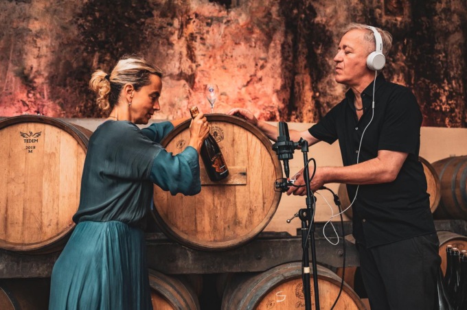 “Questo brano ha una natura più meccanica e tecnologica – ha proseguito il compositore, che alle spalle ha anche una collaborazione con l’artista Michelangelo Pistoletto – Nella sala cantine, invece, ho utilizzato i suoni dei calici, partendo anche dalla natura circostante e arrivando fino all’effervescenza e alla croccantezza della bolla nel bicchiere, per sintetizzare il percorso che porta dalla natura, quindi dalla vite, all’elemento sonoro che segna la fine di questo percorso, che è la bollicina nel bicchiere, passando attraverso la descrizione di tutte quelle magie che nell’oscurità della cantina e nella lentezza del tempo prendono vita”.