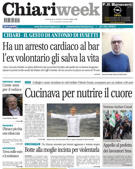 Il nuovo numero del vostro settimanale è in edicola. Questa settimana in prima pagina l’intervista a un ex soccorritore, titolare di un locale a Chiari, che ha soccorso in piazza un uomo di 78 anni che era andato in arresto cardiaco. “Non c’era più il battito, in attesa dell’arrivo dei soccorritori ho fatto solo quello che mi hanno insegnato”. Queste le parole (molto umili) del titolare del Caffè Centrale.