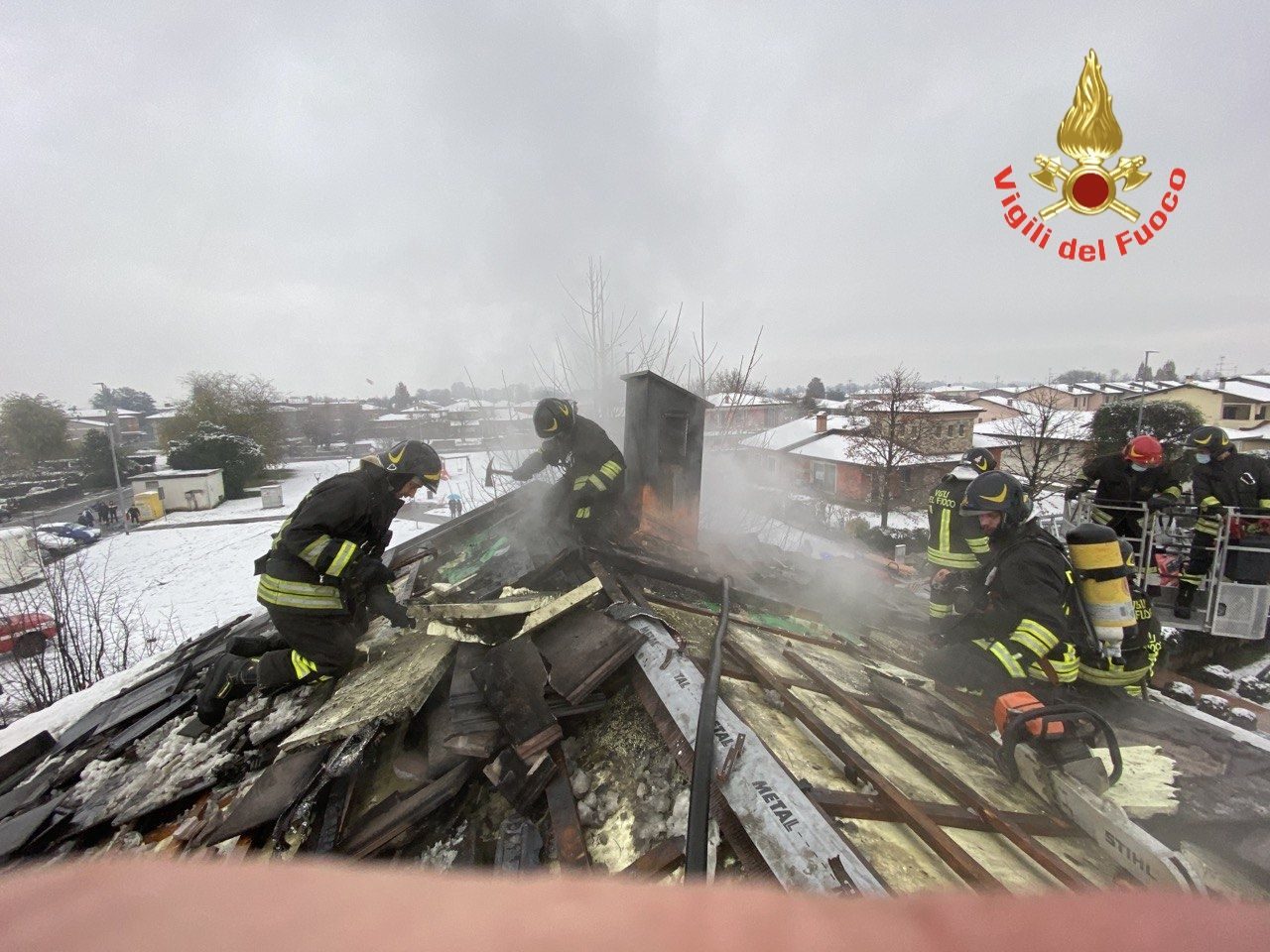Il tetto prende fuoco, tempestivo l’intervento dei Vigili del Fuoco LE FOTO