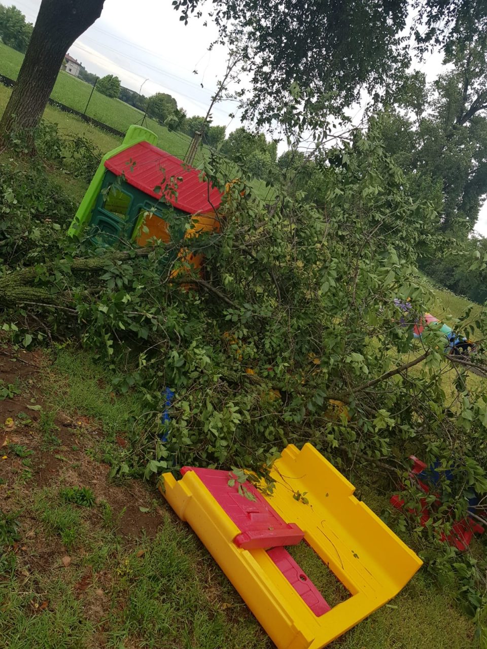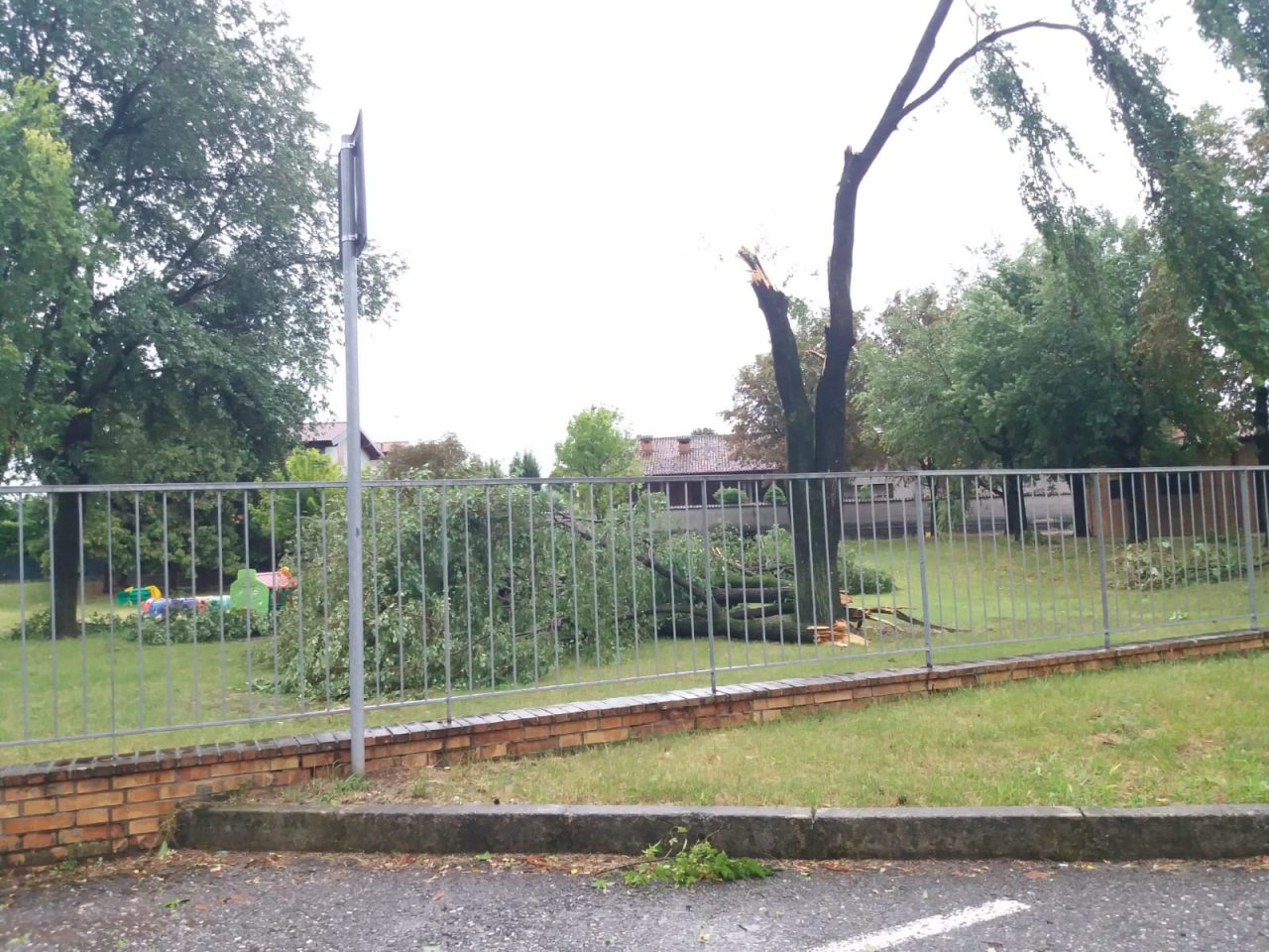 Anche a Borgosatollo come in tanti comuni del territorio si procede con una nuova conta dei danni in seguito al temporale di questa mattina. Gli alberi sradicati nel giardino della scuola dell’Infanzia Collodi hanno distrutto i giochi presenti nella zona esterna. Altri alberi sono stati abbattutti sul territorio comunale dove, nella zona Nord, un blackout ha privato della corrente i borgosatollesi. Il forte vento ha inoltre spostato le guaine della tettoia del centro sportivo, ma fortunatamente non sono stati rilevati feriti. Sul posto sono intervenuti i dipendenti dell’ufficio Tecnico con la Polizia locale, la Protezione civile con gli operai della ditta che ha l’appalto e gli amministratori.