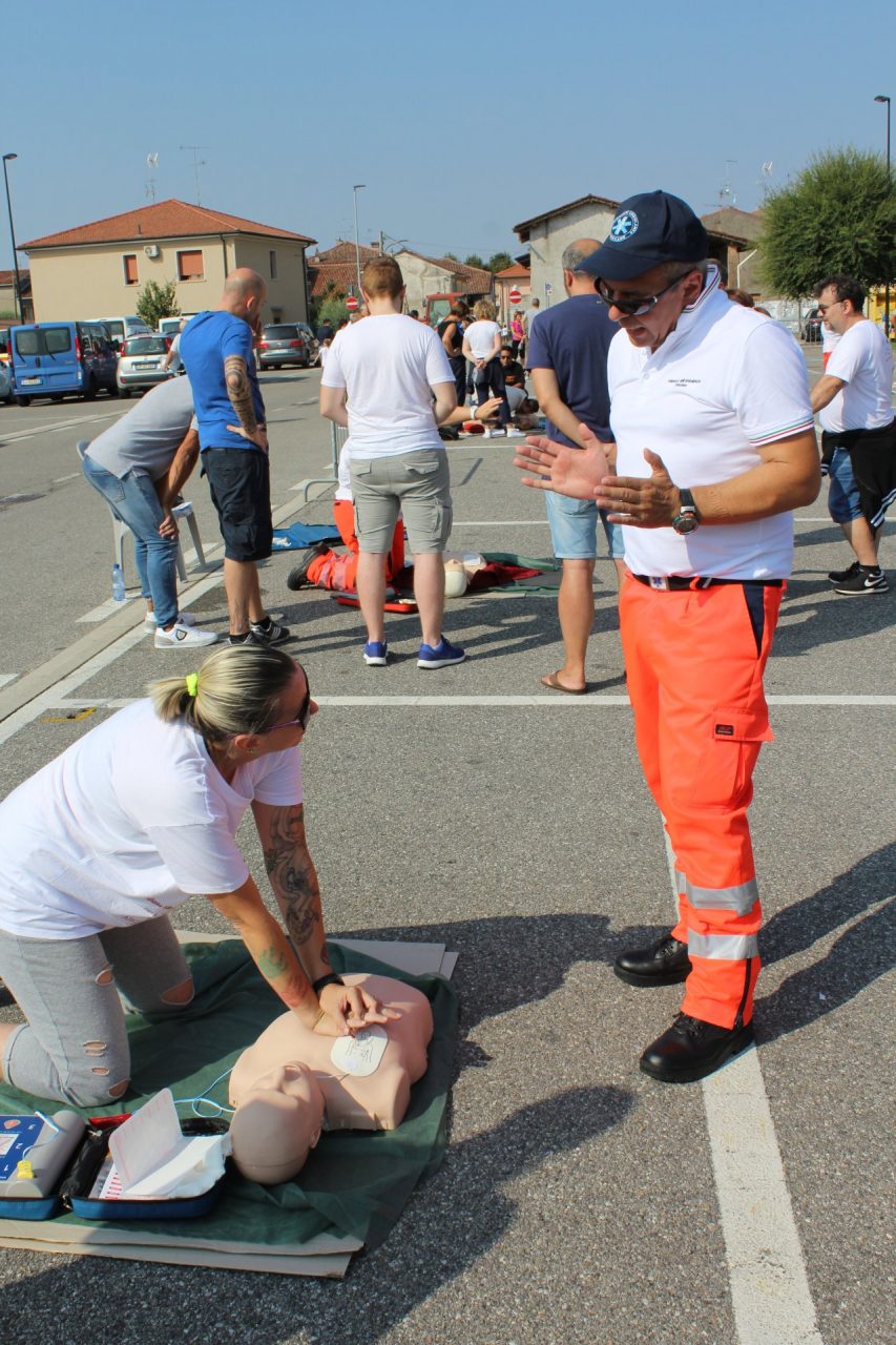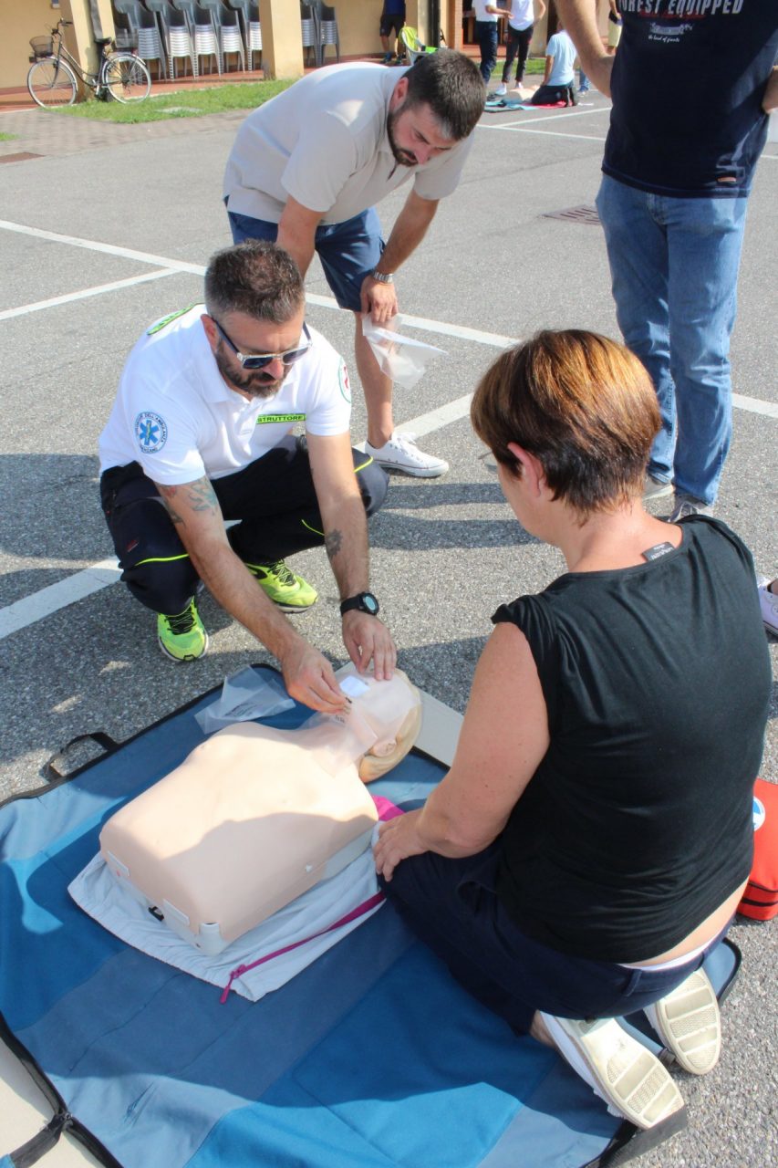 In tanti, quasi cento provenienti dal paese e dai dintorni, hanno risposto presente al corso. Domenica 9, mentre piazza delle Libertà era riempita dalle attività commerciali e sportive, in piazza del Volontario si tenevano le inizative legate all’evento «Una mano sul Cuore 2.0». Istruttori, personale certificato e esperti volontari vicini all’ambulanza trenzanese hanno formato i tanti presenti ad imparare l’uso del defibrillatore e le manovre cardiache.