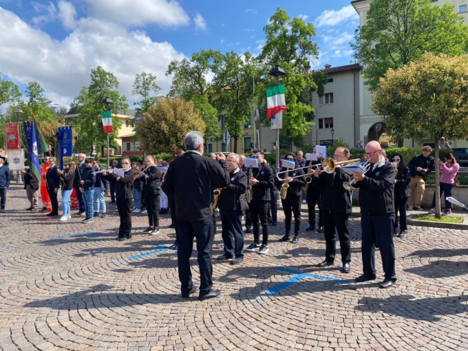 Davanti al monumento alla Resistenza e alla Costituzione sono stati ricordati i nomi dei partigiani che hanno immolato la loro vita per la libertà. In un silenzio rispettoso sono stati scanditi i loro nomi dopo l’esecuzione dell’Inno d’Italia a cura della banda cittadina Carlo Inico, alla presenza di tutte le autorità civili, militari e religiose. Al termine dell’elenco dei nomi è stato eseguito il silenzio in loro onore e in loro memoria.