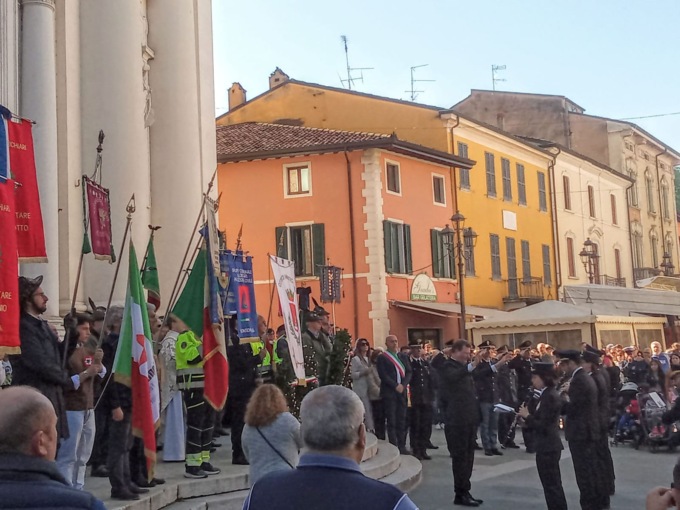 La cerimonia ha preso il via alle 9.10 con l’omaggio al monumento dei Caduti di Torbiato; alle 9.30 la partenza del corteo dal Centro Anziani di via Cairoli, accompagnato dalla banda «Giacomo Puccini», passando per la casa di riposo e proseguendo per via Umberto I° fino al monumento ai Caduti delle Guerre; alle 10 l’arrivo al parco delle Rimembranze con i discorsi delle autorità presenti; alle 11 la Messa nella cappella Dandolo.