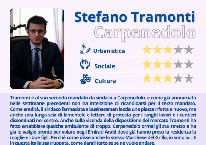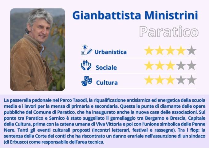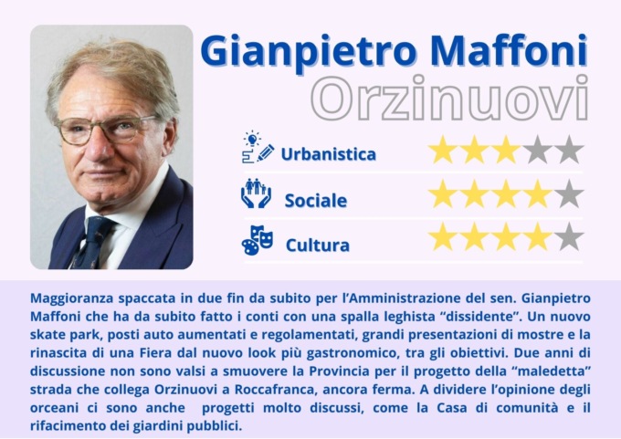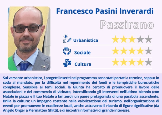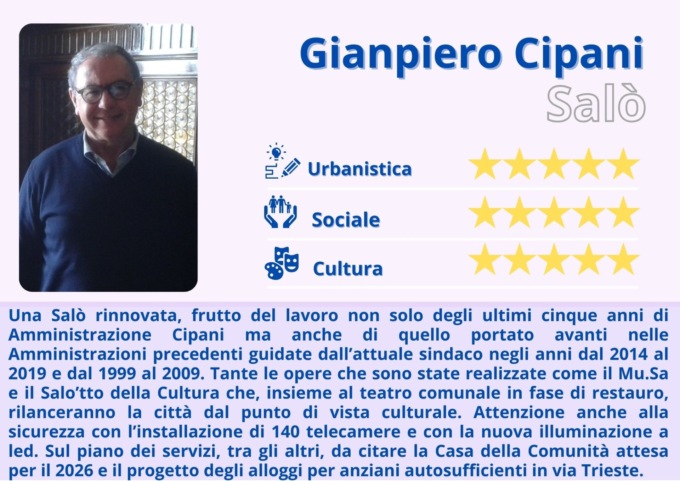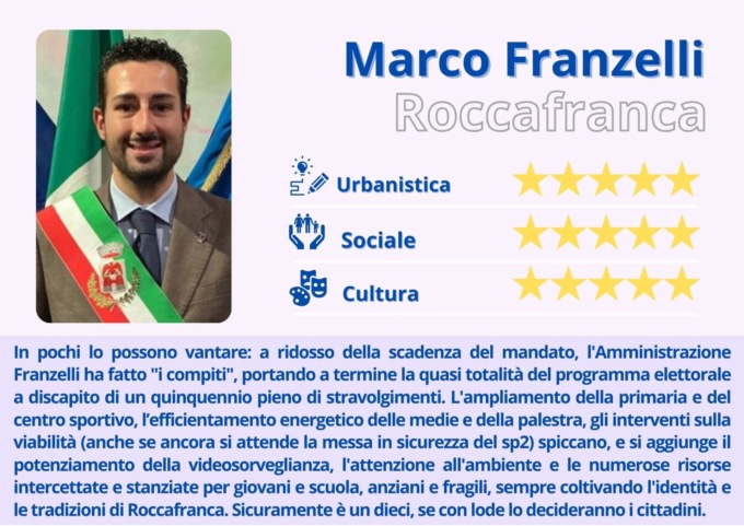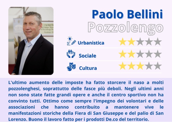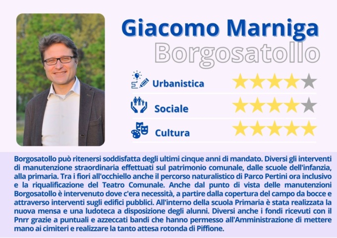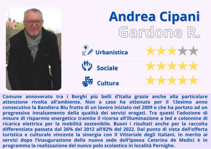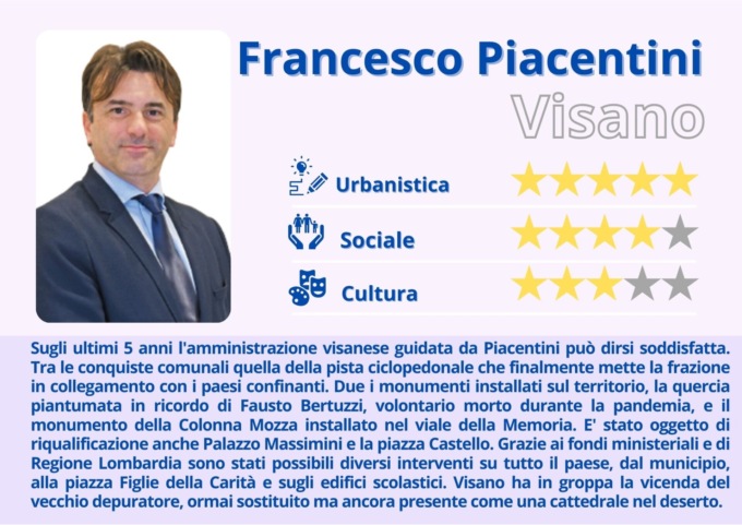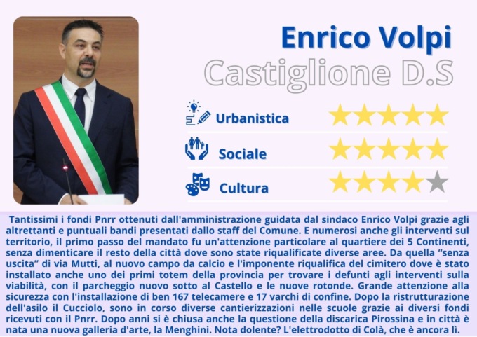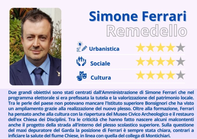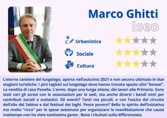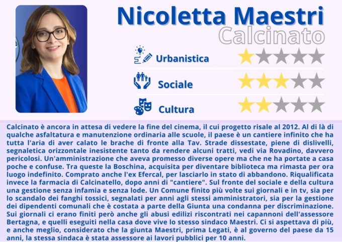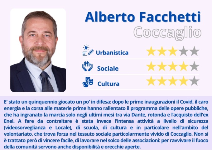 Tirando le somme della cronaca politica e amministrativa degli ultimi cinque anni, Comune per Comune, con i settimanali ChiariWeek, MananerbioWeek, MontichiariWeek e GardaWeek abbiamo cercato – in poche righe e a nostro sindacabilissimo giudizio, s’intende – di riassumere l’andazzo delle Amministrazioni e di chi le dirige. Tre le materie in cui abbiamo «giudicato» ciascun sindaco. Si tratta dell’Urbanistica (dalle opere pubbliche alla gestione del territorio, passando per l’attenzione al verde e alla sostenibilità); del Sociale (dalla crisi post-Covid, ai rapporti con il Terzo settore, passando per i servizi di base quali scuole e asili); e della Cultura, o più in generale la promozione della partecipazione alla vita del paese.