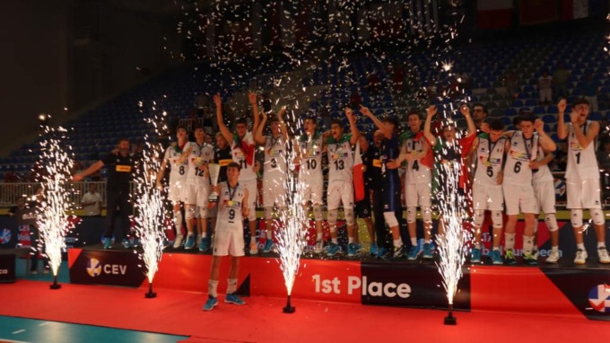 Sembrava già un sogno trionfare al Torneo delle Regioni, conquistando il titolo italiano, ma arrivare a vincere, a un mese di distanza, gli Europei a soli 15 anni è davvero un’impresa straordinaria. Il giovanissimo atleta adrense Andrea Usanza (compirà 16 anni a novembre) gioca nella Nazionale italiana di pallavolo U17 e domenica sera a Podgorica, in Montenegro, con gli azzurrini guidati dal tecnico Monica Cresta ha battuto in finale per 3-1 (25-23, 25-19, 20-25, 25-20) la Bulgaria.