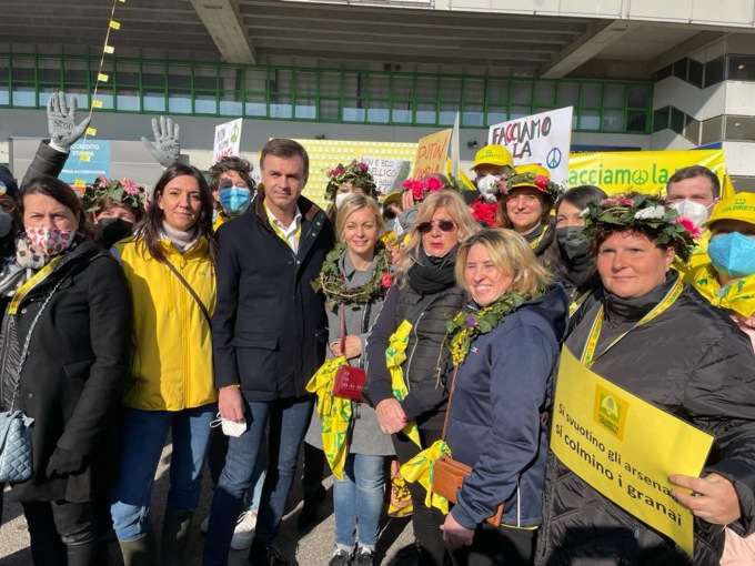Contro la guerra che fa perdere vite umane e mette in pericolo il loro futuro, anche i giovani e le donne di Coldiretti Brescia a sostegno dei colloqui di pace e dell’aumento dei costi delle materie prime nella mobilitazione organizzata da Coldiretti a Verona questa mattina in occasione dell’apertura della Fieragricola. Con loro anche il presidente nazionale della Coldiretti Ettore Prandini, assieme alla delegata dei giovani Coldiretti Veronica Barbati.