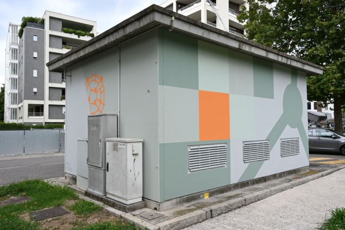 Nel corso degli anni il progetto ha sviluppato diversi concept artistici – dalla città alla natura fino all’elettricità – per arrivare all’attuale visione, basata su due principi fondamentali: il dialogo tra le cabine e il contesto urbano circostante e una comunicazione grafica essenziale, in grado di integrarsi armoniosamente nel paesaggio. I colori predominanti – marrone, verde e azzurro – richiamano proprio questa connessione visiva con l’ambiente. Anche il logo di Unareti, ormai parte integrante delle decorazioni, si inserisce con naturalezza nell’elemento grafico.