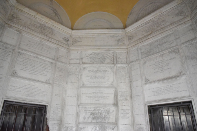 Il cinerario “Esterno 4”, dove sono posizionate le undici lapidi oggetto di restauro conservativo, è costituito da un corridoio che passa attraverso la Cappella X Giornate.