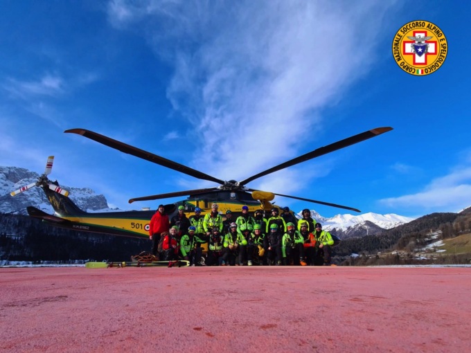 È stata una giornata di condivisione delle attività praticate durante gli interventi in montagna, in particolare quelle legate al soccorso in valanga. Dalla piazzola di Vilminore, le squadre sono state portate in quota con l’ausilio dell’elicottero della Guardia di finanza, giunto da Venegono (Varese). Nel territorio del comune di Colere, nell’area del rifugio Albani, sotto la parete Nord della Presolana, Cnsas e Sagf hanno simulato uno scenario caratterizzato da un distacco di neve, con persone coinvolte, durante il quale i soccorritori hanno messo in campo le rispettive competenze specifiche, attraverso l’impiego di strumenti quali artva (apparecchio ricerca travolti in valanga), pala e sonda, che per legge devono essere sempre parte dell’equipaggiamento di chi va in montagna in inverno, non solo per lo sci d’alpinismo ma anche per escursioni e ciaspolate.