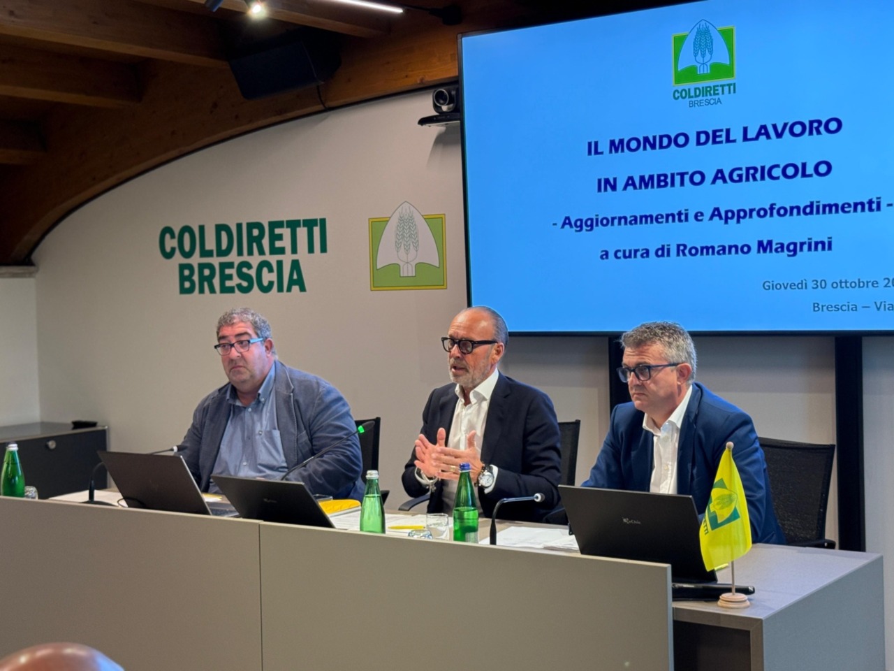 Questa mattina (giovedì 30 ottobre 2025) nella sala riunioni della sede provinciale di Coldiretti Brescia si è tenuto l’incontro con Romano Magrini (Responsabile nazionale dell’area Lavoro, Gestione del Personale e Relazioni Sindacali di Coldiretti). Al centro i temi di lavoro e sicurezza in agricoltura. All’appuntamento hanno preso parte anche la Presidente di Coldiretti Brescia, Laura Facchetti, il Direttore provinciale Andrea Repossini e il responsabile Area Paghe di Coldiretti Brescia Antonio Zanetti.