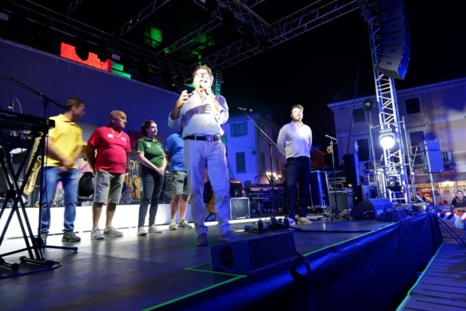 Pochi minuti prima del concerto, il vicesindaco Maurizio Libretti e il consigliere delegato al Palio delle Quadre hanno incontrato l’artista per offrirgli un omaggio e permettergli di conoscere la storia della città. Poi, in apertura della serata, sul palco con lo speaker Roberto Goffi e il consigliere delegato Ludovico Goffi sono saliti anche i presidenti delle Quadre, che stanno donando ottimo cibo e grandi appuntamenti alla città: si tratta di Marco Delpanno per Cortezzano, Maura Colombo per Marengo, Giancarlo Ghidini per Villatico e Alessandro Marzani per Zeveto.