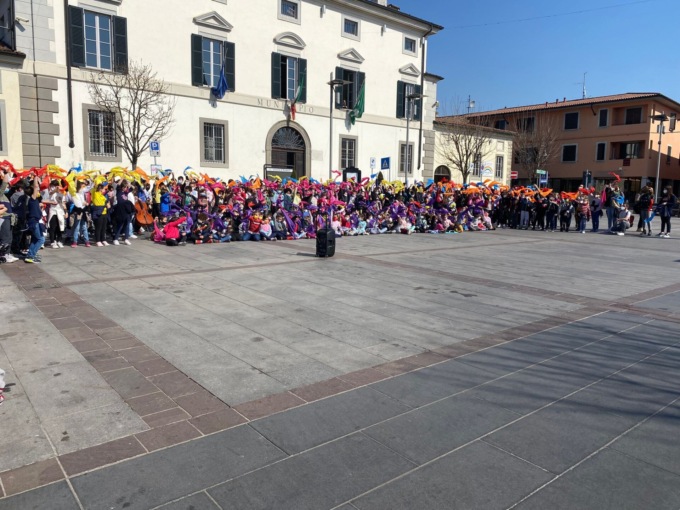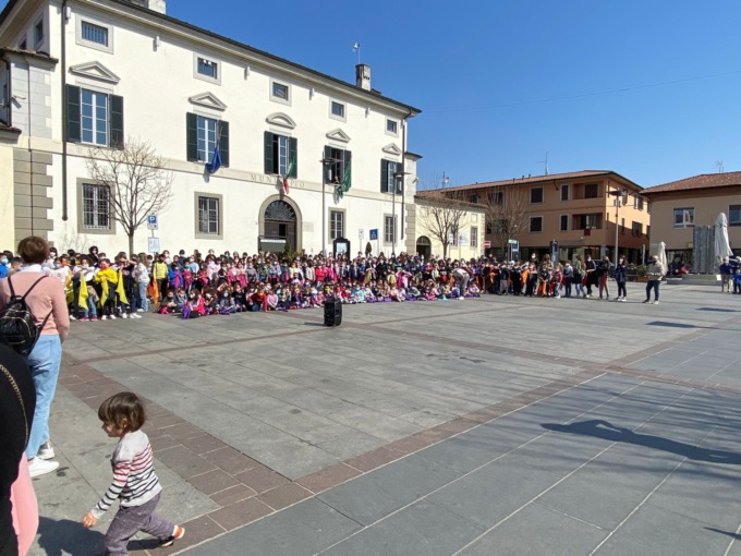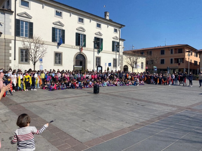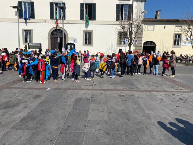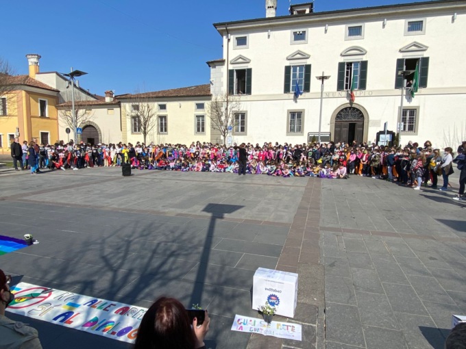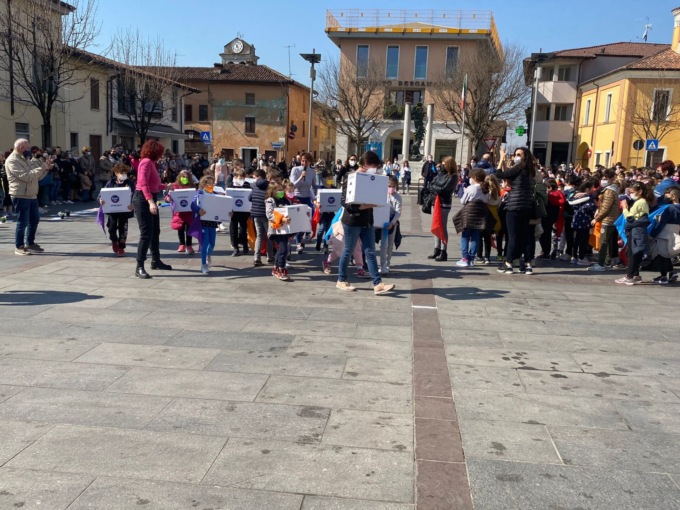 Si è tenuto questa mattina (venerdì 25 marzo) a Rudiano il flash mob in favore della pace e per mostrare vicinanza alla popolazione ucraina. A prendervi parte i bambini di tutte le classi della scuola primaria del comune. I giovanissimi alunni hanno poi donato dei pacchi da inviare proprio alle popolazioni vittime della guerra.