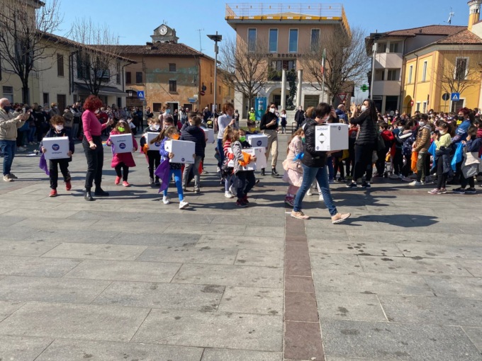 I giovanissimi alunni hanno anche consegnato delle donazioni destinate alla popolazione ucraina.