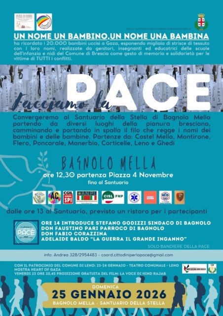 Commemorazione e corteo per la pace: appuntamento domenica 25 gennaio 2026.