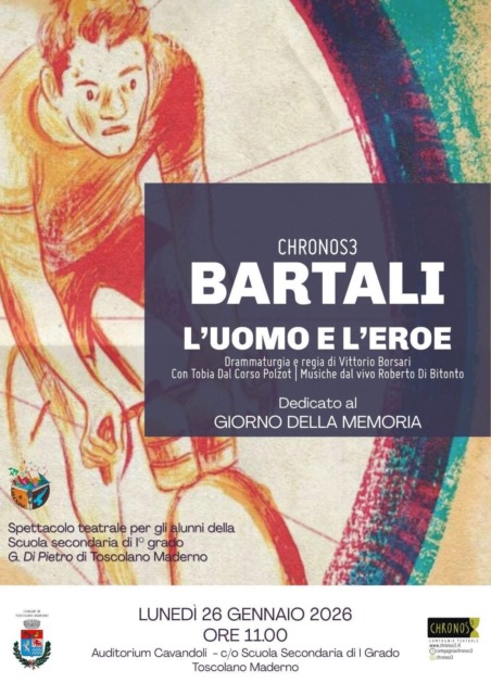 Nella mattina di lunedì 26 gennaio 2026, gli alunni della scuola secondaria di I grado di Toscolano Maderno assisteranno a una rappresentazione intensa e toccante che ripercorre la vita di Gino Bartali: non solo grande ciclista, ma Giusto tra le Nazioni per il suo straordinario impegno umanitario durante la Seconda Guerra Mondiale.