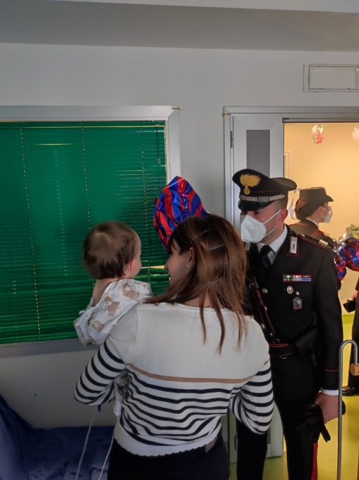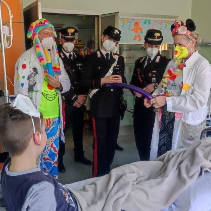 Alla visita con i Carabinieri, hanno partecipato anche tre volontari di un’associazione locale attiva sul territorio che, con i costumi da clown e i palloncini colorati, hanno contribuito a donare un sorriso ai piccoli pazienti dell’Ospedale.