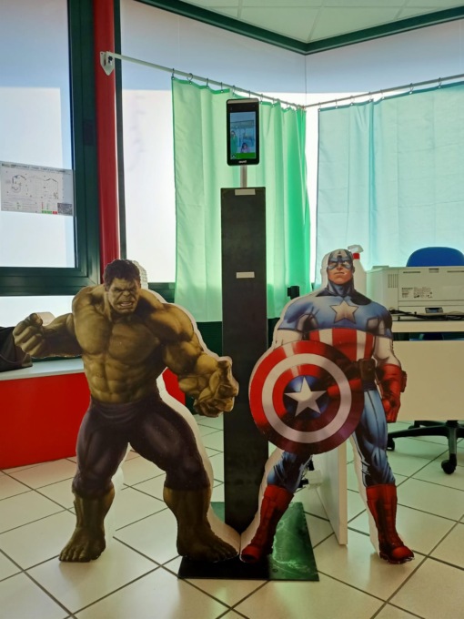 Il centro vaccinale dell’Italmark è diventato a prova di bambino (e non mancano i supereroi)