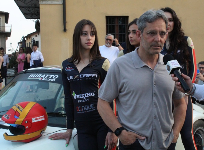 Una serata speciale nel cuore del centro storico di Rovato. Su concessione dell’Amministrazione comunale, l’auto con cui il pilota rovatese Alex Caffi correrà la Malegno-Ossimo-Borno è stata presentata nella serata di giovedì 26 maggio nella piazzetta dell’ex Pretura. Al fianco di Alex la sorella Barbara Caffi, il figlio Michele e la nipote Benedetta. All’evento, che è proseguito poi all’Osteria Quattro Rose, sono intervenuti il sindaco Tiziano Belotti e l’assessore all’Urbanistica Daniela Dotti. Prima di arrivare il pilota ha effettuato le ultimissime prove all’Autodromo di Franciacorta.