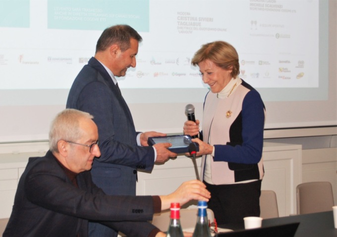 Per quanto riguarda i contenuti della tavola rotonda, si è parlato di diversi temi: il ruolo della filantropia e la necessità di costruire un sistema filantropico più efficace in Italia, il ruolo delle fondazioni nella rivoluzione che stiamo vivendo, in cui l’imperativo di produttività ed efficienza deve essere cambiato in modo sostenibile, l’esempio, in ottica integrata, delle comunità energetiche, la necessità di una coerenza delle politiche, collegata a una visione sistemica. “Noi fondazioni facciamo innovazione anche rischiando, per promuovere tutta l’economia, con un’attenzione particolare ai piccoli che non vanno esclusi, in ottica di inclusione: questa è la missione che ci siamo dati. Sull’economia circolare, il concetto è mutuato dalla natura dove non esiste il concetto di rifiuto, dove, se non la devastiamo, c’è equilibrio”, ha evidenziato ancora Claudia Sorlini. Ribadito da tutti i relatori l’impegno di Fondazione Cogeme, che si è mostrata all’avanguardia sui temi della sostenibilità. Prima di passare alle premiazioni, è stata presentata la Tesi di dottorato di ricerca, attivata presso l’Università degli studi di Bergamo, del Segretario generale di Fondazione Cogeme Michele Scalvenzi, con l’obiettivo di coniugare la mission filantropica della Fondazione alle competenze comunicative utili al Gruppo Cogeme, e nello specifico al gestore del Servizio idrico integrato Acque Bresciane, negli anni diventato partner strategico per molte attività della Fondazione stessa.