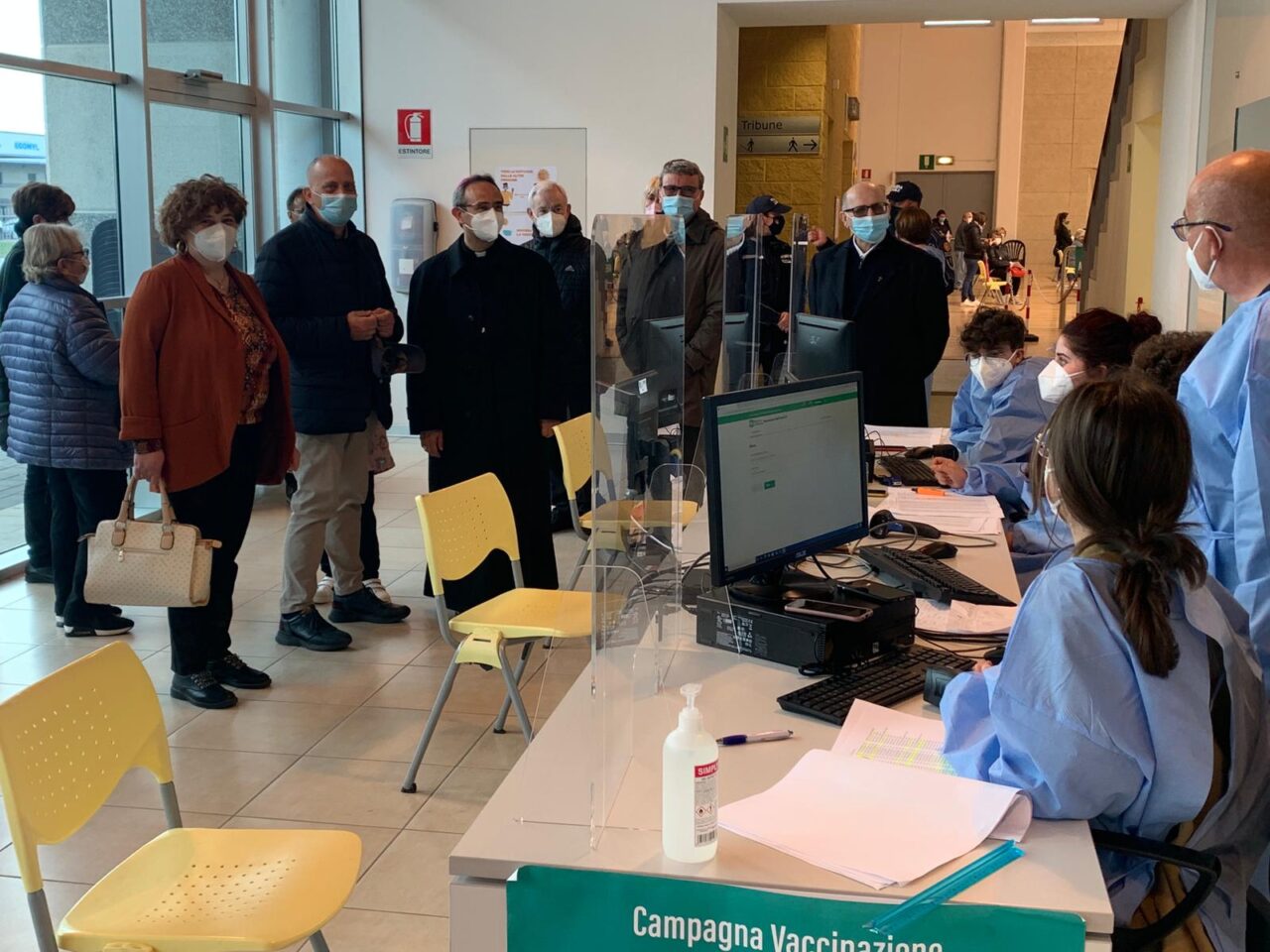 Il Vescovo di Mantova in visita all’hub vaccinale volontario di Castel Goffredo.