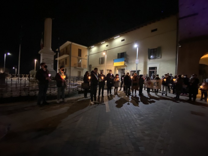 Centinaia e centinaia di persone insieme, in rigoroso silenzio. Hanno sfilato tra le vie del paese, partendo dal Municipio e tornando nella medesima piazza, davanti alla chiesa. Pontoglio questa sera è stata teatro della fiaccolata per la pace. Un modo per dire di no, tutto insieme, alla guerra in Ucraina. Ad accogliere tutti i presenti c’erano gli Alpini che hanno consegnato le fiaccole ma tra le mani dei partecipanti c’erano anche disegni, bandiere di pace e dell’Ucraina.
