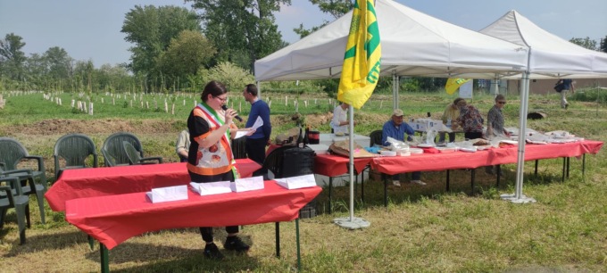 Presenti alla cerimonia il sindaco Laura Alghisi, ma anche il parroco, don Tiberio Cantaboni che ha benedetto il nuovo bosco e tutti i bimbi nati con le loro famiglie.