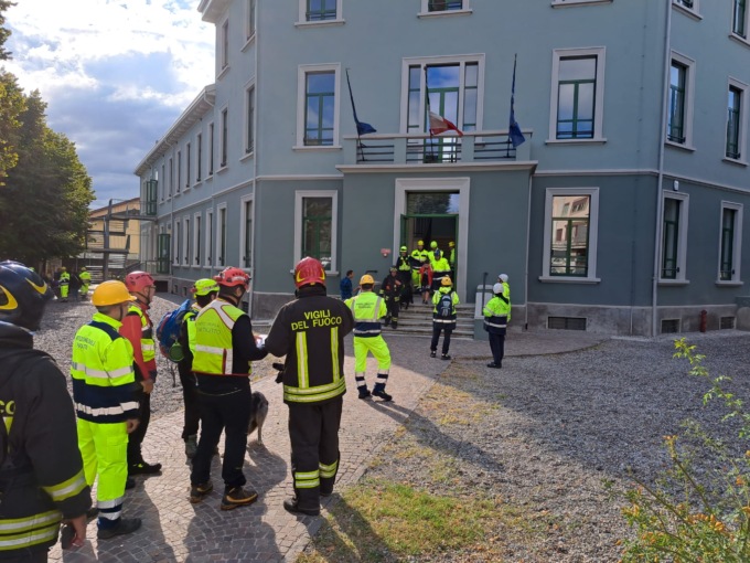 Nel corso della mattinata ha preso il via lo scenario di ricerca dei dispersi negli spazi della scuola primaria di Cologne.