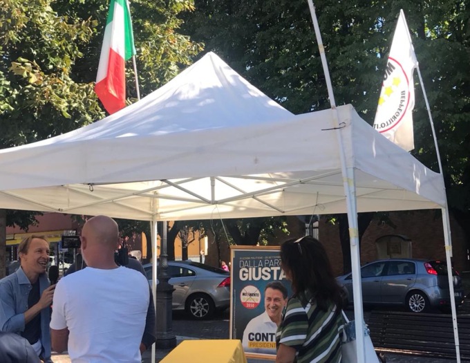 Cristiano Militello a Montichiari: sorpresa in centro nei gazebo allestiti per la campagna elettorale