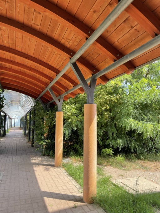 L’intervento prevede di realizzare una copertura in carpenteria dell’apparecchiatura a servizio della copertura gonfiabile, ovvero una struttura sorretta da quattro montanti sulla cui sommità sia posata una lamiera grecata coibentata. L’obiettivo è proteggere l’apparecchiatura dall’acqua piovana.