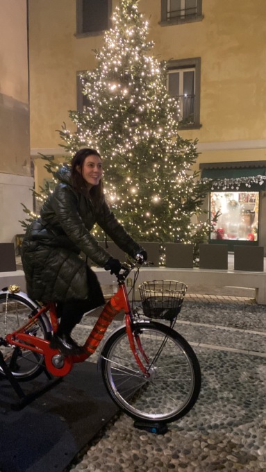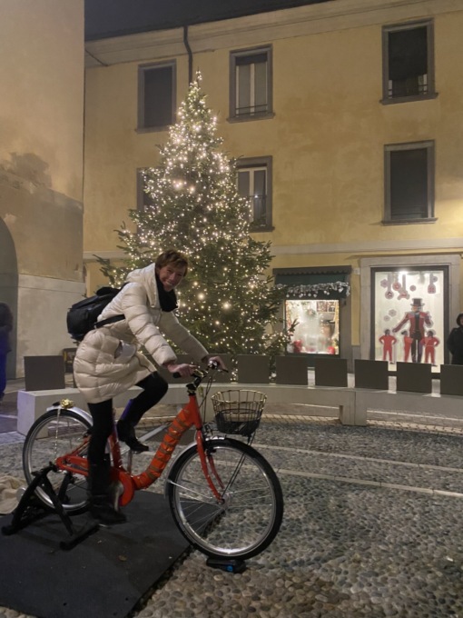 La prima a salire sulla bicicletta è stata l’assessore Chiara Facchetti, che ha dato il via alla magia.