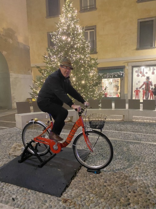 Sono state accese ieri sera, a Chiari, le luminarie di Natale. In questa occasione è stato anche reso noto che l’albero di Natale situato in piazza delle Erbe… funziona a pedali.