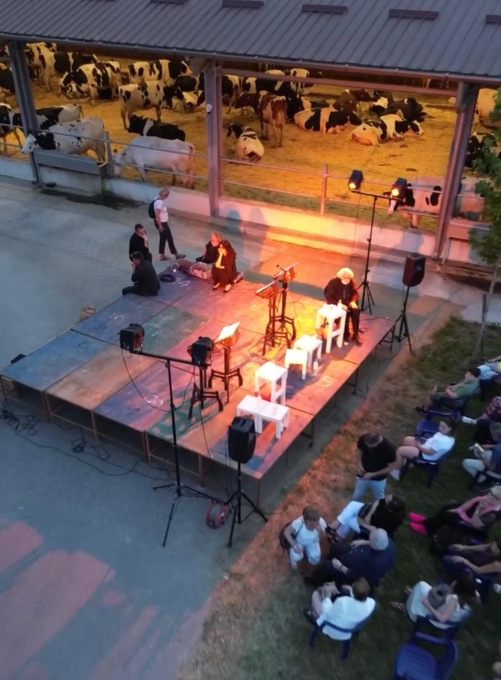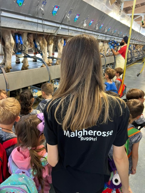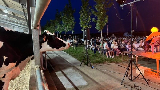 Negli anni l’azienda ha aperto le sue porte a decine di scolaresche, non solo studenti degli istituti agrari che devono «toccare con mano» quale sarà il loro lavoro, ma tutti sono i benvenuti, “sogno che qui venga un liceo classico”, ha ripetuto spesso Valeria, anche i grest vengono in visita e quest’anno per la prima volta sono venuti anche i bimbi dell’asilo, ma non solo. Malghe rosse ha partecipato alla Fiera di Brescia dedicata alle carriere future dei ragazzi proponendo una stalla sensoriale, la scorsa estate ha accolto due musiciste coreane che studiano gli effetti della musica classica sugli animali per un concerto molto esclusivo, e poche settimane fa è stato allestito, in collaborazione con il Comune di Verolanuova, uno spettacolo teatrale tutto dedicato al latte, una esperienza unica: aver allestito un palcoscenico in mezzo alle stalle è stato davvero suggestivo, inoltre l’idea è piaciuta eccome: 150 persone si sono presentate per assistere a “Oro bianco” di Andrea Albertini con Pietro Frusca e la compagnia teatrale La Betulla, un racconto con al centro il latte declinato in letteratura ma anche attraverso i dati scientifici del Cnr, in poche parole uno spettacolo davvero mai visto che ha catturato un folto pubblico.