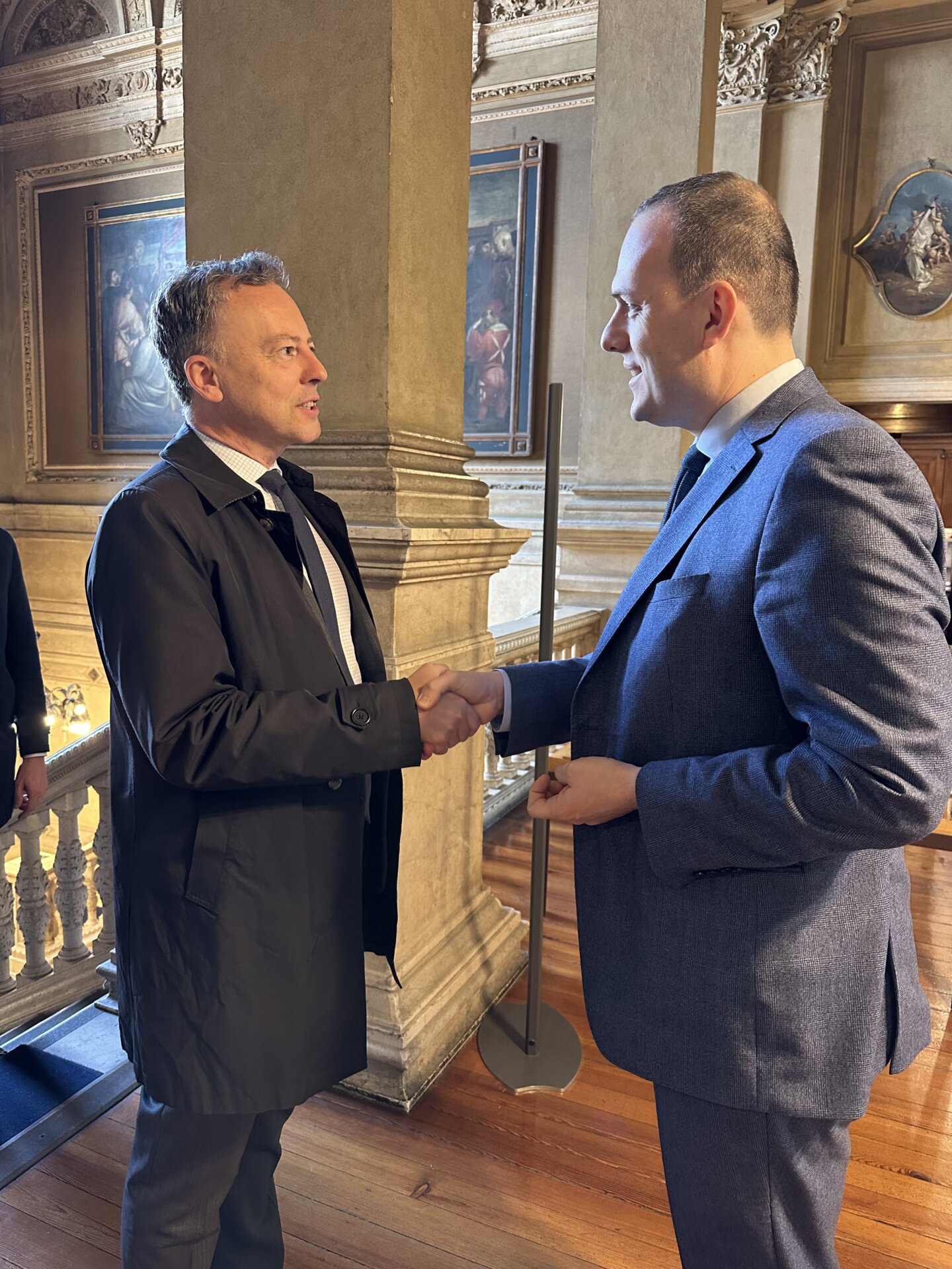 L’Ambasciatore di Francia in Italia Martin Briens in visita a Palazzo Loggia a Brescia.