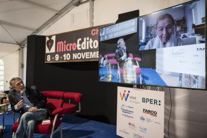 Domenica 10 novembre è infatti, formalmente, il momento di chiusura di questa ventiduesima edizione nel segno del “Non è mai troppo tardi” di manziana memoria. A far da cornice a tutta la rassegna, le “geolocalizzazioni” della Mappa letteraria, copyright di Microeditoria che permette di mappare i libri di narrativa e i luoghi contenuti in essi, il ricco palinsesto del Fuori Microeditoria, i laboratori stem per i bambini, i focus tematici della sezione Cultura digitale curati da Anna Giunchi. Le entrate a Villa Mazzotti, in questa due giorni intensa, sono state “ornate” dalle opere d’arte dei ragazzi dell’IIS Antonietti di Iseo, in collaborazione con We’co Design e che varranno da stimolo per altri studenti cinesi, come già anticipato durante l’incontro del sabato. Si è confermato ricco il corollario d’iniziative culturali autonome e allo stesso tempo dentro il perimetro della rassegna: vale per il concorso 7 parole per un racconto ideato e curato da Claudio Calzana e il Premio Purgatori, rivolto alle scuole superiori e dedicato al giornalista Andrea Purgatori scomparso recentemente per un caso di mala sanità (la cerimonia si svolgerà domani, lunedì 11 novembre, all’Istituto Einaudi).