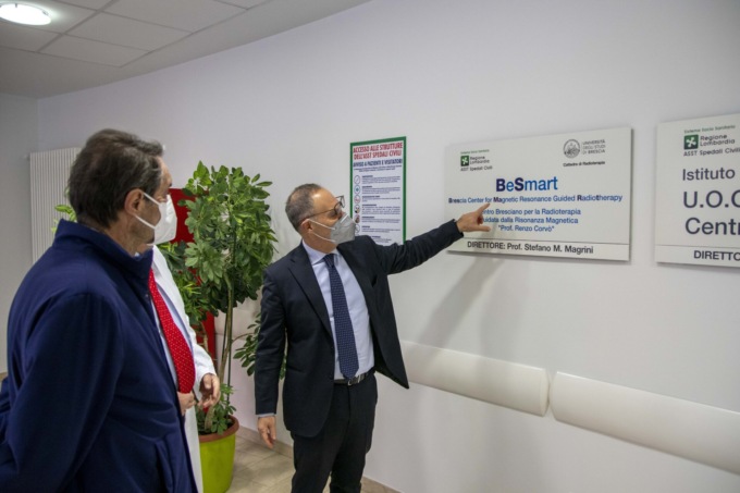 È stato inoltre presentato il Centro Bresciano per la Radioterapia Guidata da Risonanza magnetica, Be Smart (BrEScia Center for MAgnetic resonance guided RadioTherapy). Il Centro, collocato presso l’Istituto del Radio “O. Alberti” e intitolato al Prof. Renzo Corvò, accoglie due apparecchiature: Ingenia, un simulatore a RM (risonanza magnetica), e Unity, un’apparecchiatura all’avanguardia, prima in Lombardia e seconda in Italia.