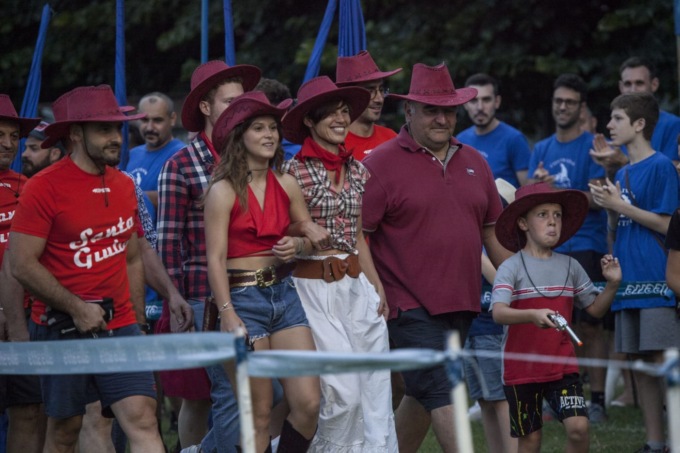Come da tradizione le contrade S.Giulia, Cascina Colombara, Martinengo e Ontini hanno aperto la serata sfilando. Tra effetti scenici da far west, sontuosi abiti storici di nobili casate, la solare aria di festa e la fierezza del detentore del primato del Palio dell’anno precedente, molteplici sono state le proposte messe in campo per stupire i giurati. Ma a convincere Don Francesco Pedrazzi e il sindaco Gianluigi Sturla, a cui è stato affidato dalla giuria l’onore e l’onere per la migliore coreografia, è stata la contrada Martinengo. Una volta entrata nel vivo la gara ha visto i rossi dominare la scena, e a differenza dello scorso anno, portare a casa lo stendardo del vincitore.