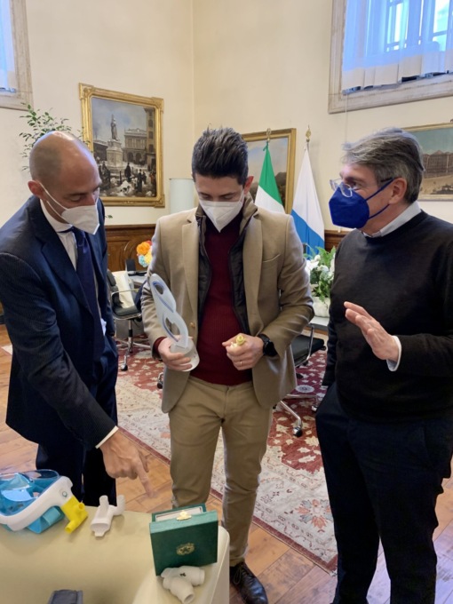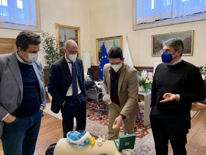 Il sindaco Emilio Del Bono ha incontrato a palazzo Loggia oggi, (giovedì 10 febbraio), Cristian Fracassi, l’ingegnere bresciano che ha trasformato una maschera da sub in un respiratore, preziosissimo nei giorni più duri della pandemia a marzo e aprile 2020.