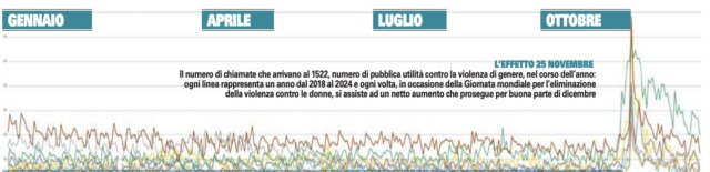 Qualcuno dirà che celebrare il 25 novembre, Giornata mondiale per l’eliminazione della violenza contro le donne, sia inutile. Ma si sbaglia, se non altro per un mero fatto statistico: il quarto trimestre di ogni anno è solitamente caratterizzato da un picco delle chiamate al 1522, il numero di pubblica utilità nazionale nato proprio per aiutare le vittime a chiedere aiuto. E il picco, ha scoperto l’Istat, è legato proprio al 25 novembre, e all’effetto coinvolgente e motivante di campagne mediatiche, eventi pubblici e iniziative legate a questa giornata.
