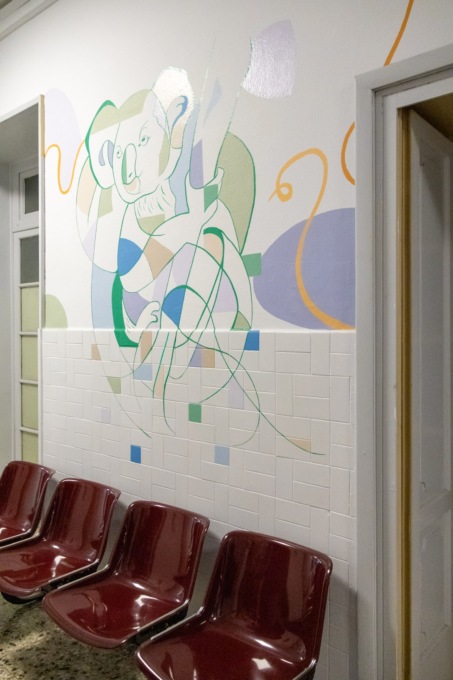 “A volte non è facile far comprendere il mestiere del decoratore, spesso inteso come una sorta di lavoro finalizzatosolamente all’abbellimento di ambienti e oggetti. In realtà, come dimostra l’intervento degli studenti di Accademia SantaGiulia sui muri di questi ambulatori, si tratta di qualcosa di più del semplice abbellimento. La decorazione realizzata diventa in questo spazio anche l’occasione per un gioco, un passatempo in attesa delle cure, una divertente sfida all’individuazione e al riconoscimento di ciò che è raffigurato. Oltre agli effetti visivi e di luminosità affidati alle forme e ai colori, gli studenti hanno prestato attenzione anche alla banale ma fondamentale esigenza di far passare il tempo dell’attesa senza annoiarsi troppo, quasi immedesimandosi nei pensieri dei piccoli pazienti. Per Accademia SantaGiulia questa capacità di ascolto e di interpretazione delle esigenze della committenza è un elemento fondamentale della formazione offerta, costantemente affiancata alle competenze tecniche e professionali via via sviluppate”.