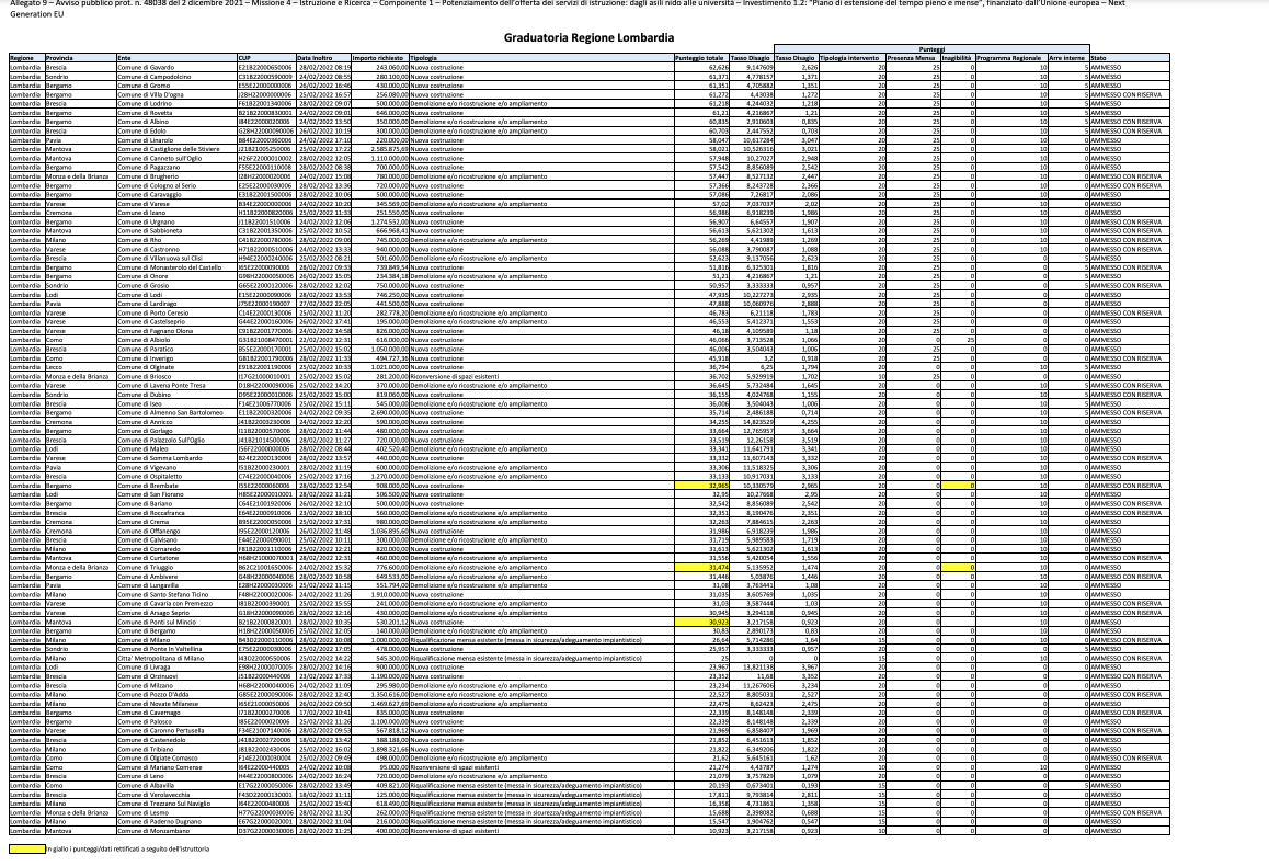 Di seguito l’elenco dei progetti ammessi/ammessi con riserva in Lombardia
