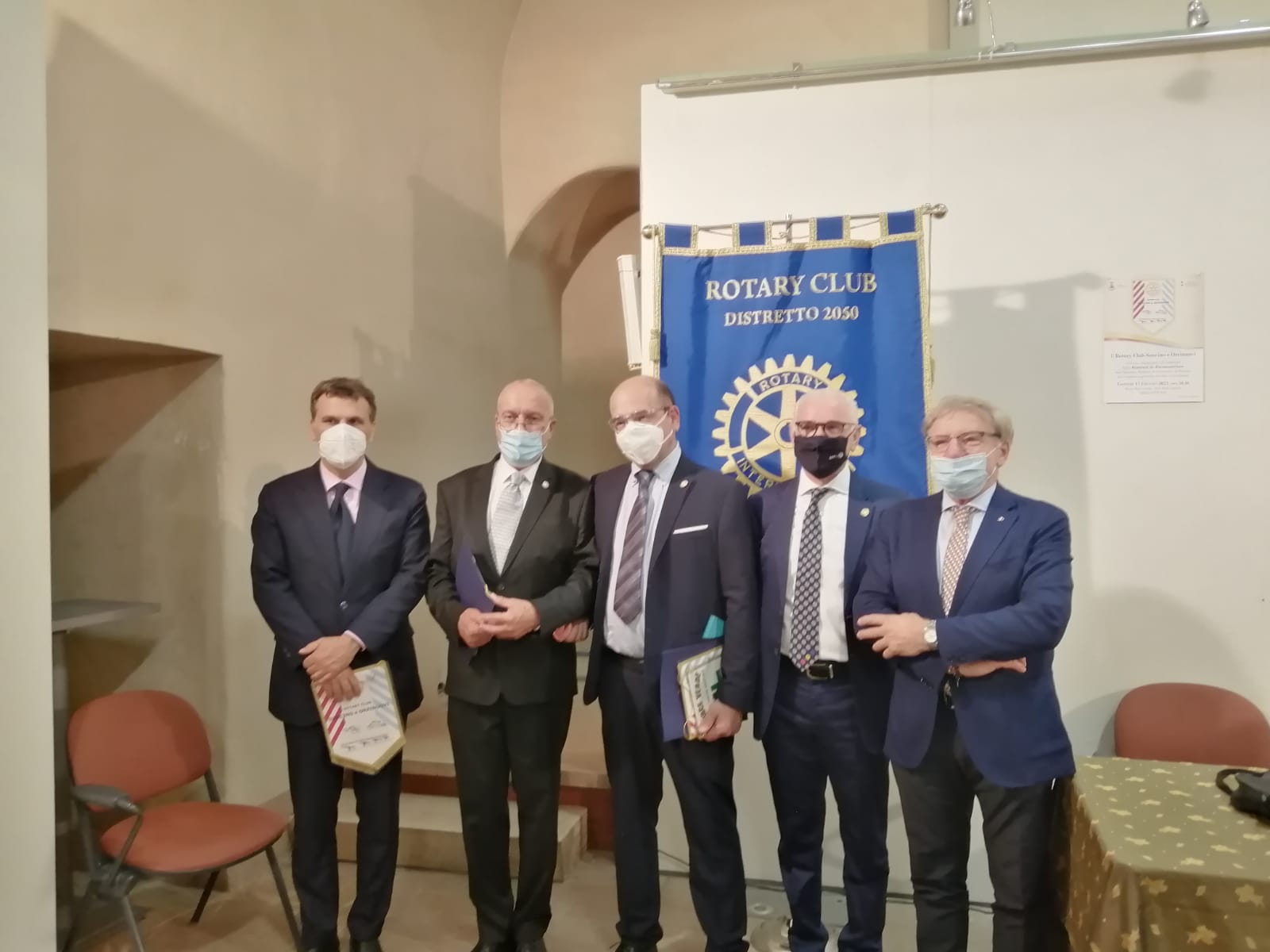 Una breve ma sentita cerimonia quella andata in scena ieri sera, fra le mura della Rocca San Giorgio, quando il Rotary Club Orzinuovi-Soncino ha consegnato a due medici e due realtà attive nell’ambito del soccorso una targa per ringraziarli di quanto fatto in questi mesi segnati dell’emergenza Coronavirus. Dall’altra parte, nel ruolo del premiati, il dottor Luigi Guidato, gli operatori della Croce Verde di Orzinuovi e di quella di Soncino, e il dottor Piersevero Micheli, da tutti considerato il “medico eroe” degli orceani.