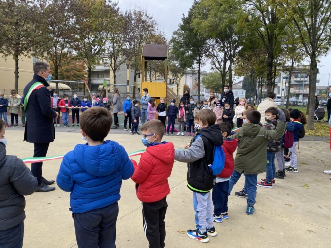 Sono stati proprio i bambini, disposti in cerchio, ad inaugurare con il sindaco Massimo Vizzardi il parco di via Sant’Angela Merici. Quest’anno infatti, è questo il posto scelto dall’Amministrazione per la riqualificazione. I più piccoli hanno dialogato con il primo cittadino e, successivamente, hanno tagliato il nastro.