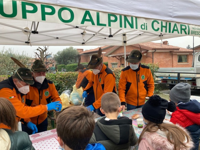 A seguito di alcuni giochi e attività preparate dagli animatori, non è mancata la merenda con il gruppo Alpini di Chiari.