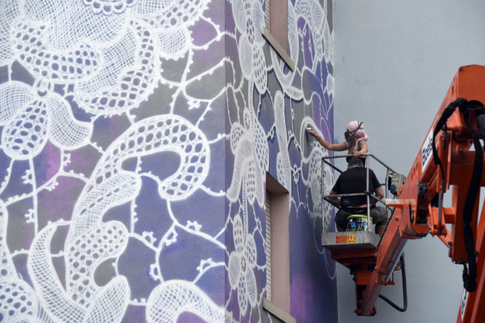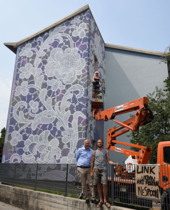 L’opera è stata realizzata dall’artista di strada polacca NeSpoon, che dipinge sulle pareti pizzi e merletti della tradizione del luogo. Si definisce nata nel 2009, anno in cui ha iniziato a dipingere. Dal suo sito: